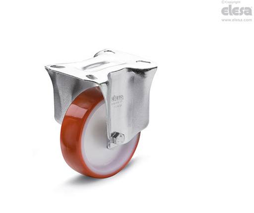 - FSL: roue avec monture à platine pivotante et trou passant central, sans frein.