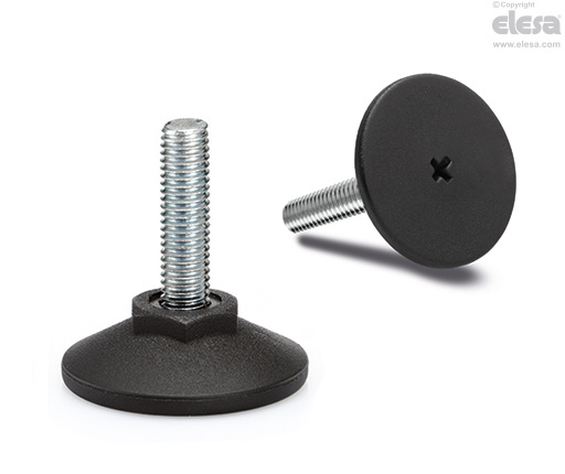 • LX-AS: tige filetée en acier zingué brillant, base avec disque antiglisse en caoutchouc SBR, fourni assemblé à la base.