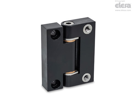 Die Lagerbuchsen, sowie die Gewindebuchsen der Formen B und D werden in den Scharnierflügeln montiert geliefert. Die Scharnierachse, Anlaufscheiben und Einstellschrauben liegen lose bei.