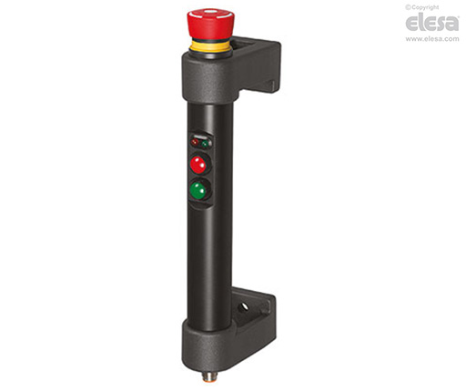 Der Griff RH-FG16 vereint auf perfekte Weise Ergonomie, Funktionalität und Sicherheit. Im Griffkörper sind eine oder mehrere Tasten sowie zwei LEDs (rot und grün) integriert, die den Zustand der Maschine anzeigen.