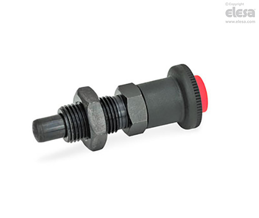 Rastbolzen mit Entriegelungssperre werden eingesetzt, wenn ein versehentliches, unbedachtes Einziehen des Raststiftes verhindert werden soll.