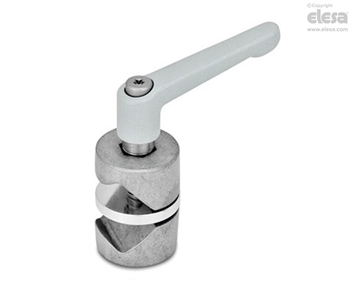 Verdrehbare Klemmhalter MSM-TW klemmen Stäbe bzw. Rohre über ein Prisma, wodurch eine große Ø-Toleranz überbrückt werden kann. Die Druckfeder erleichtert das Klemmen und Lösen.