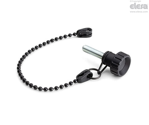 Knopf mit Haltekabel CV-T aus Polyethylen schwarz.