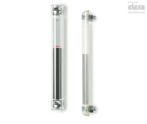 The red line on the lacquered contrast screen is visible only when the float is in its lowest position (minimun fluid level = m).