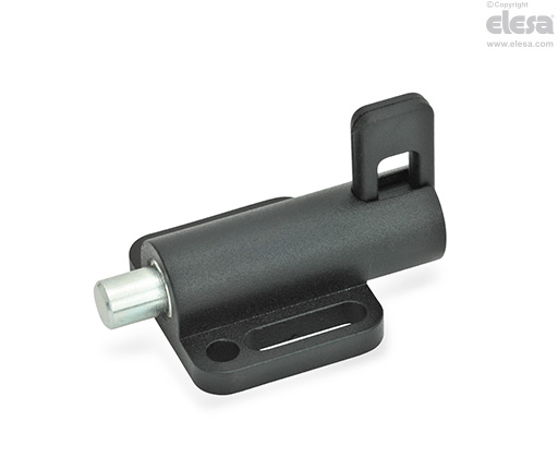 In GN 416 indexing plungers the plunger is protruding when out of gear. By pulling the lever axially the plunger is retracted. For optimal positioning of the plunger of GN 416 indexing plungers use positioning flanges GN 416.1.