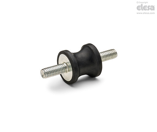 - DVC.1: threaded studs and base plate in polished zinc-plated steel, vibration-damper body in natural rubber NR, black colour, hardness 40, 55, 70 Shore A ±5.