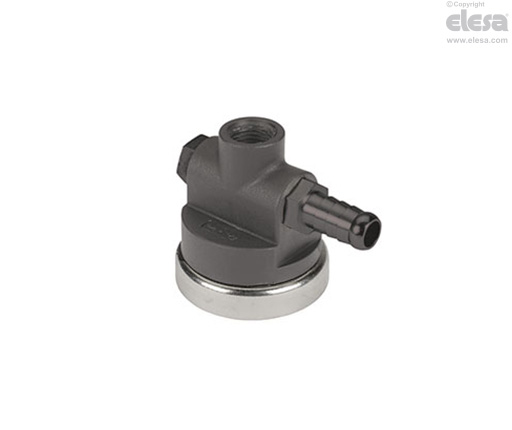 Fluid can enter the system via the barbed fitting to be coupled with an external tube, for a better seal, the use of tightening bands is recommended.