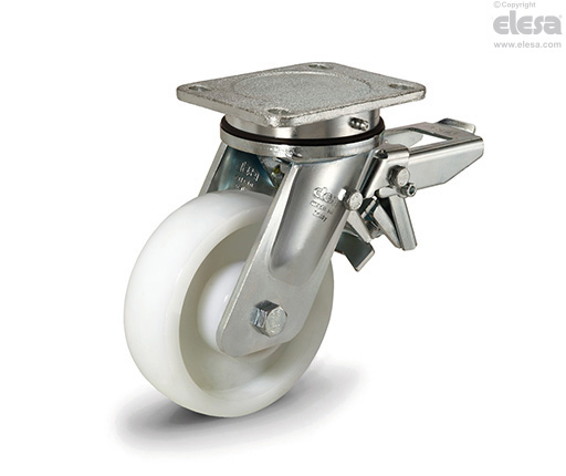 Suitable for heavy industrial applications, due to loads up to 9000 N. Excellent wear and tearing resistance. For further information see wheel technical data sheet RE.F8.