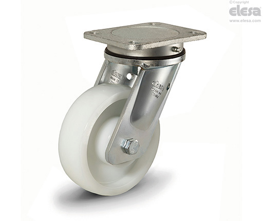 Suitable for heavy industrial applications, due to loads up to 9000 N. Excellent wear and tearing resistance. For further information see wheel technical data sheet RE.F8.