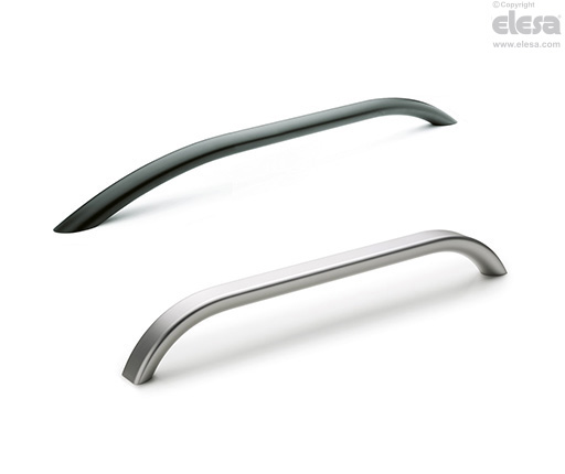 Anodised aluminium oval cross section bar, sandblasted and satin finish.