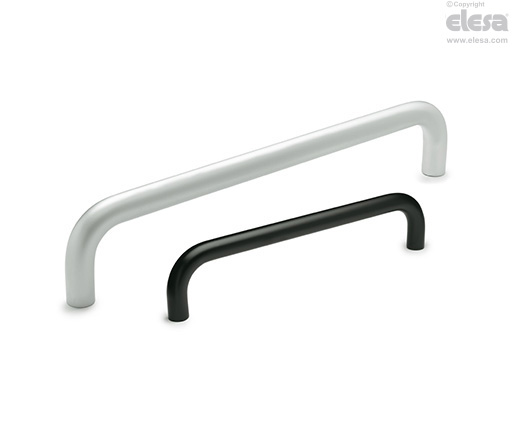 Anodised aluminium round cross section bar, ground and sandblasted surface, satin finish.