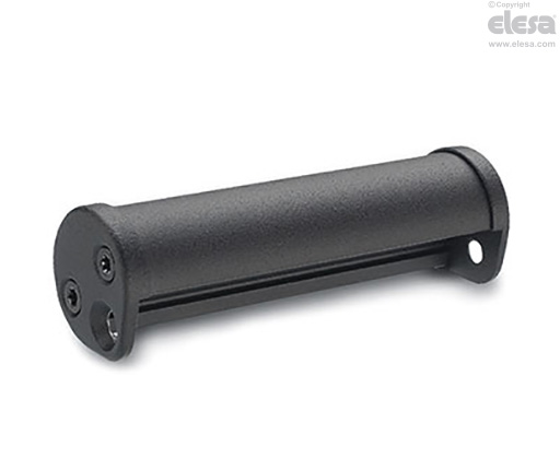 Die-cast zinc alloy. Fixed to the aluminium profile with self-tapping screws in black zinc-plated steel, included in the supply.