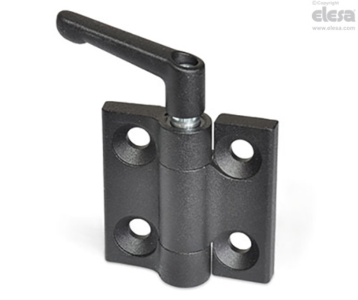 In its resting position, the internal teeth of the lever of the adjustable handle for clamping is not connected to the teeth of the hinge locking element, i.e. they can rotate freely.