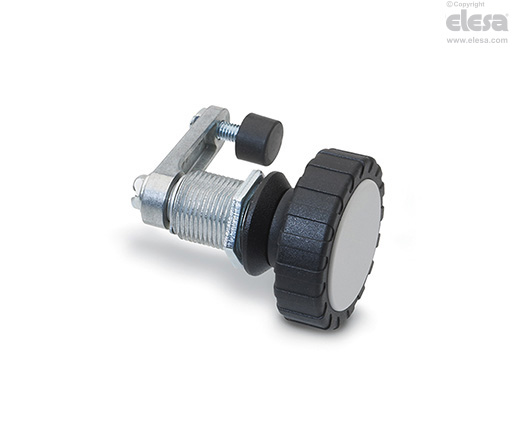By a further turn of the knob, an internal device with cam and spring axially moves the lever (6 mm stroke) until it reaches the locking position.