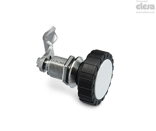 By a further turn of the knob, an internal device with cam and spring axially moves the lever (6 mm stroke) until it reaches the locking position.