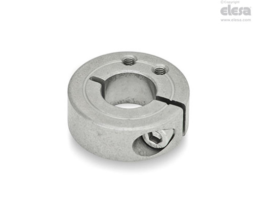 GN 7062.1 split set collars are fixed to the shaft by tightening the screw properly. The threaded holes allow to fix brackets for sensor holders GN 7062.10 on shafts.