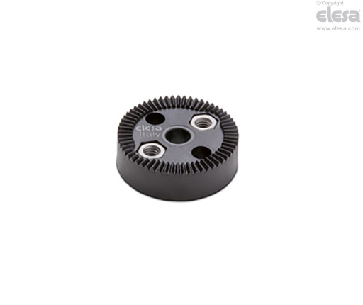 The toothed clamping elements RDB-F and RDB-B, coupled between them or with the executions RDB-CF or RDB-CB, allow to lock the position of two components rotating around an axis.