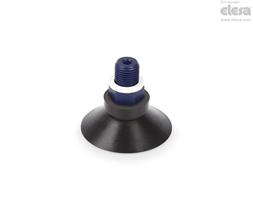 Vacuum cup in oil-proof rubber (NBR), natural rubber (NR), natural yellow rubber (NG), or silicone rubber (VMQ).