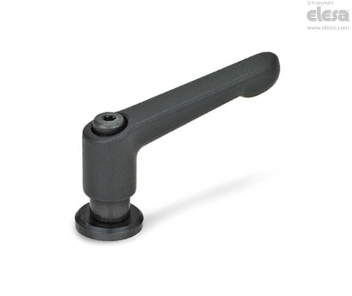 The adjustable hand levers with captive support washer are released by the rotation of the clamping element, so as not to mark the contact surfaces. One typical application is to use the hand lever for slots.