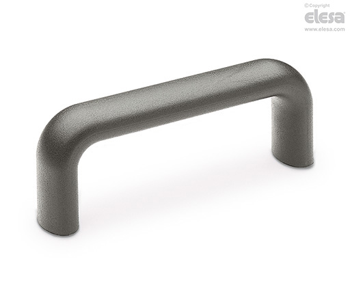 Tecnopolímero de base poliamídica (PA) reforzado con fibra de vidrio, resistente a temperaturas altas, color gris oscuro, acabado mate.