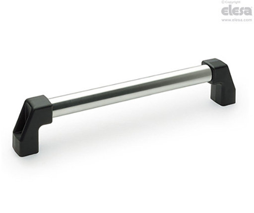 Tecnopolímero de base poliamídica (PA) reforzado con fibra de vidrio, color negro, acabado mate. Se incluyen montados. La conexión del soporte del asa al tubo evita que este gire.