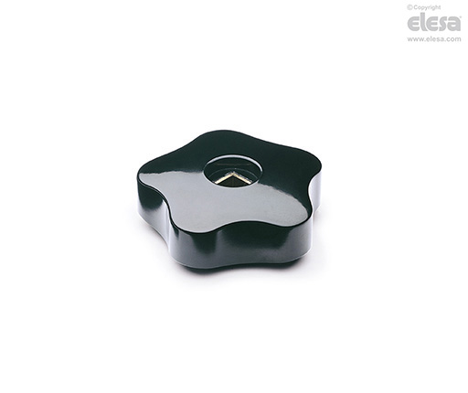 Duroplástico de base fenólica (PF), color negro, acabado brillante.
