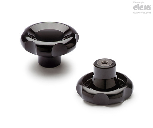 Duroplástico de base fenólica (PF), color negro, acabado brillante.