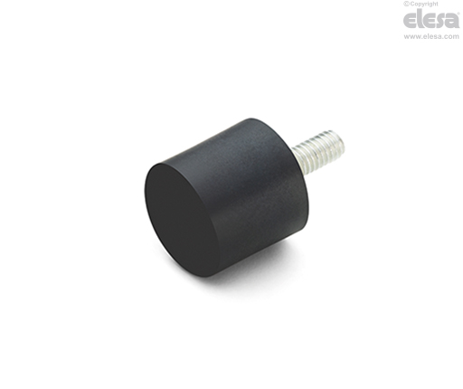 - DVM.4: prisionero roscado y placa base de acero galvanizado brillante, cuerpo antivibraciones de caucho natural NR, color negro, durezas 40, 55, 70 Shore A +5.