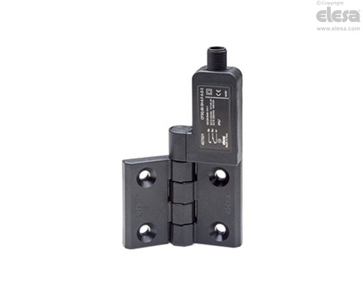- La charnière avec interrupteur de sécurité intégré (brevet ELESA) représente un dispositif de sécurité car, même en cas d’ouverture accidentelle des portes, carters, portillons de protection de machineries et équipements de production, la charnière entraîne l’interruption du circuit d’alimentation en protégeant le personnel.