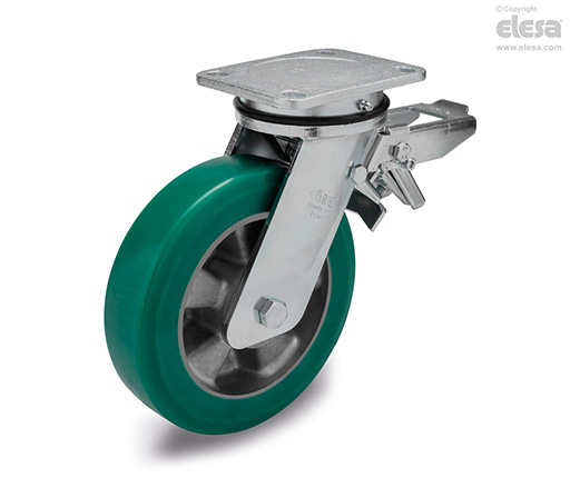 Appropriées pour des applications industrielles lourdes et des conditions difficiles de travail. Les roues en polyuréthane coulé assurent d'excellentes caractéristiques de résistance au roulement et à l'élasticité , haute résistance à l'usure et à la déchirure. Pour plus d'informations, voir la fiche technique de la roue RE.F2.
