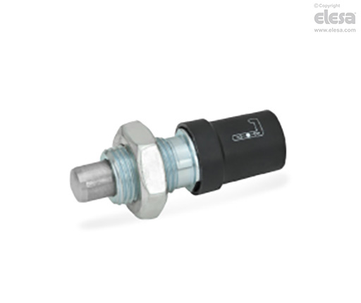 Les doigts d’indexage à ressort GN 816 en position de repos ont l’embout saillant. Si on tire l’embout à l’intérieur du corps en tournant le bouton de 90°, le doigt d’indexage atteint une position de retrait de sécurité, par le biais d’un axe qui coulisse à l’intérieur d’une fente. Le doigt d’indexage retourne à sa position d’origine avec embout saillant lorsque l’on tire de nouveau le bouton, qu’on le tourne de 90° et qu’on le relâche.