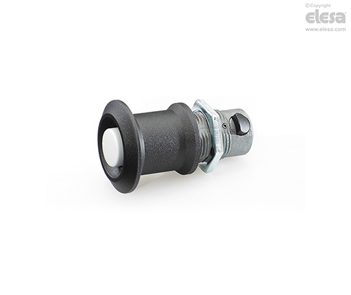 Dans les fermetures à déclic GN 315 l'action de fermeture est obtenue grâce à une dent de retenue qui sort radialement, actionnée par un ressort.