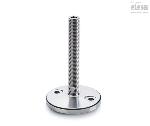 Base en acier INOX AISI 304 avec trous pour fixation au sol et tige ou rotule borgne filetée en acier INOX AISI 303.