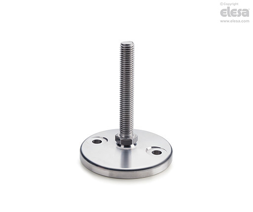 Base en acier INOX AISI 304 avec trous pour fixation au sol et tige ou rotule borgne filetée en acier INOX AISI 303.