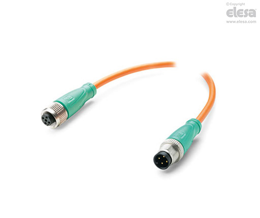 Connettore in poliuretano (PUR), colore nero, cavo in poliuretano termoplastico (TPU), colore arancio e ghiera in ottone nichelato.