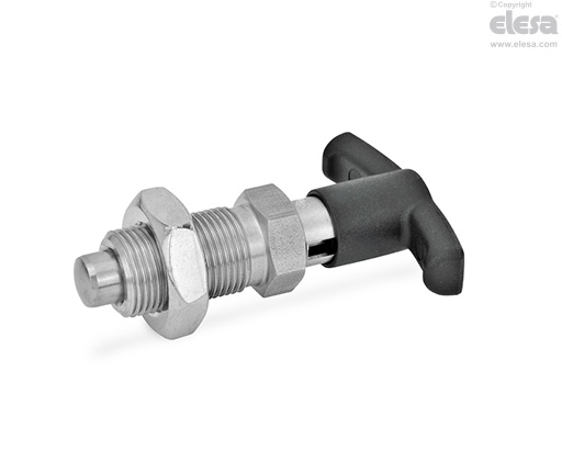 - GN 817.4-CK-NI: con posizione di arresto (tirare e ruotare la maniglia di 90°), con controdado.