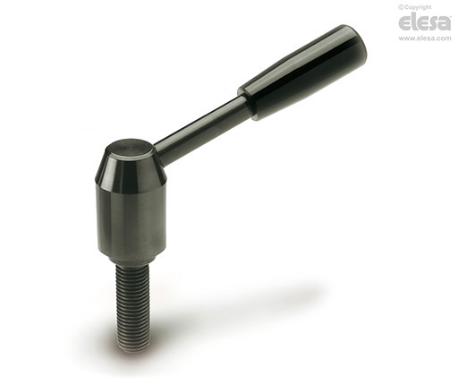 Elemento di serraggio in acciaio brunito. Molla di richiamo in acciaio.