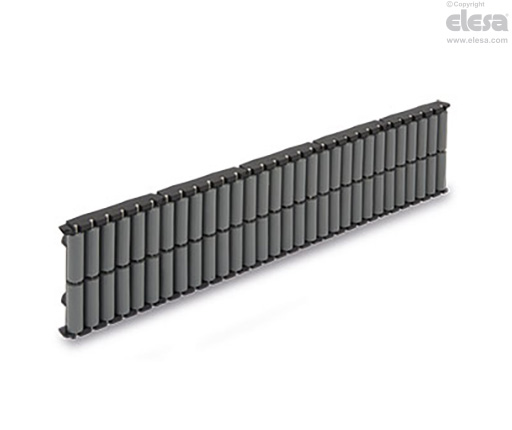 Lo snodo tra gli elementi a rulli consente un raggio di curvatura esterno fino a 500 mm, interno 350 mm.