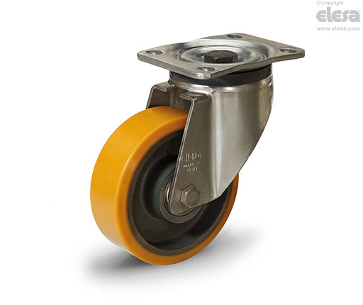Adatte alle applicazioni industriali pesanti. Le ruote in poliuretano colato garantiscono ottime caratteristiche di scorrevolezza ed elasticità, alta resistenza all'usura e alla lacerazione. Per ulteriori informazioni si rimanda alla scheda della ruota RE.F4.
