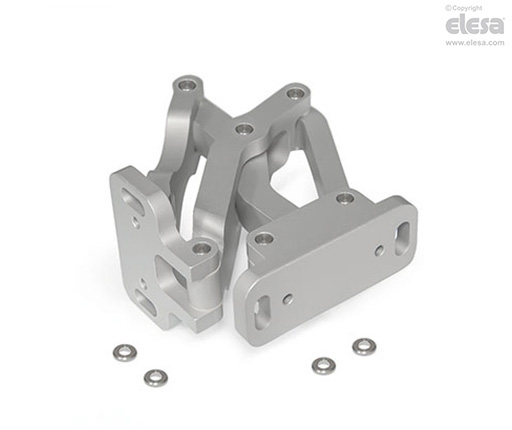 Två plan kan justeras via parallella eller vinkelräta spår i monteringsflänsarna. I det tredje planet kan positionsjusteringar göras med distansplattorna av rostfritt stål GN 7247.2.