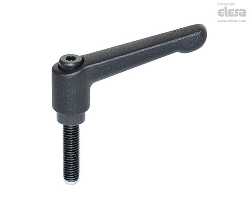 Sfärisk ände med tryckdyna gjord av teknopolymer (GN 306-KD) användbar vid oregelbundna eller icke-parallella ytor för att utföra fastspänning utan att överföra rotationen på fastspänningsyta.