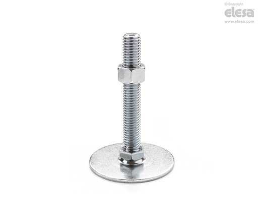 Fotplatta med ledad kula eller gängad stång med mutter i förzinkat stål.