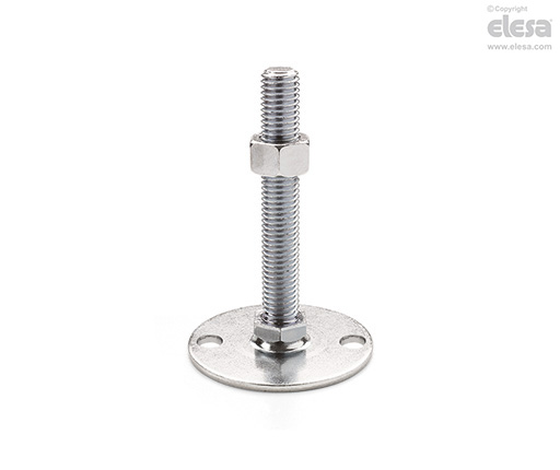 Fotplatta med 2 hål för golvmontering, ledad kula eller gängad stång med mutter i förzinkat stål.