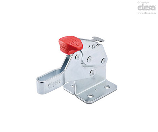 Frigöringsspak för att förhindra oavsiktlig öppning i närvaro av starka vibrationer. Alla leder är insmorda med specialfett. Det ergonomiska T-handtaget gör att spaken kan öppnas med endast två fingrar. Det speciella med MOD-S spännare är den låga profilen. Hävarmen är uppstyrd under låsningsoperationen för att förhindra att tvärgående krafter påverkar funktionen. Levereras komplett med två vikta brickor som krävs för att fästa tryckskruvar (beställs separat). Slitsade monteringshål för applikationer i tum.